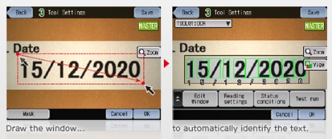 There is no need to extract characters, register a dictionary, or adjust any other setting configurations required for optical character recognition with conventional vision systems. Just outline the text to identify it. Furthermore, stable reading is possible even if the conditions of the text’s shading, thickness, and size change.