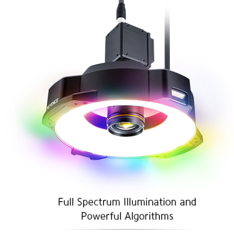 Using a high-speed monochrome camera in combination with 8-wavelength lighting provides vastly superior capabilities compared with colour inspection from conventional colour cameras (RBG).