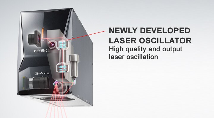 This unique laser oscillation method combines the best attributes of YVO4 and FIBRE laser markers. Years of KEYENCE laser development in solid state and fibre oscillators has led to the invention of the HYBRID oscillator powering our new MD-X Series laser marker.