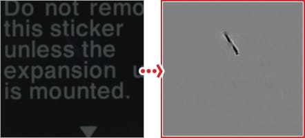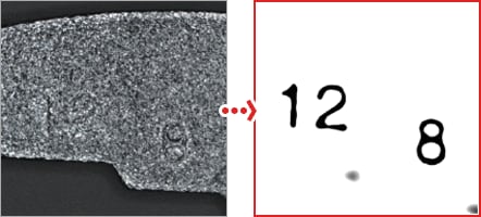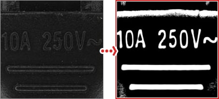 Only the embossed characters are accurately extracted, even when the background or the object is the same colour.