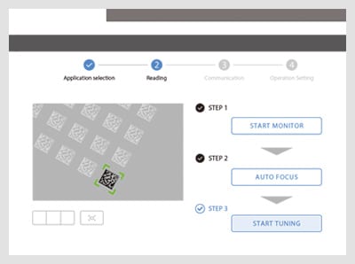The SR-X Series of AI-powered code readers has a compact design - 72% smaller than our conventional models - while still providing high-performance reading for a wide variety of codes. The AI and latest decoding algorithms provide stable reading between processes, tracking changes in codes that occur from one process to the next. It is also possible to link code readers between processes for improved reading performance. With these connections, the operating status and current settings of readers on the same network can be viewed together in a list. Automatic focus adjustment and fully automatic tuning make setup easy with the press of a button.