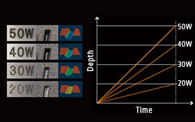 In addition to the 30 W model, a 50 W model with best-in-class output has been added to our lineup. High-power fibre laser technology leads to remarkable improvements in marking time, production efficiency, and quality.