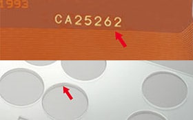 The thin laser beam is best suited for marking in narrow spaces such as on electronic components. The 3-Axis laser control corrects distortion and displacement that may be caused by a slight misalignment that occurred during installation. The thin laser beam enables uniform and precisely positioned marking not only at the centre but also at the edges of the marking area.