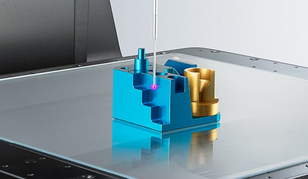 The built-in multi-colour laser instantaneously captures the height of the specified location on the part, allowing for accurate measurement regardless of the material.