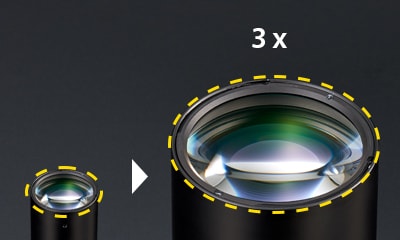The sensor is equipped with a receiver lens that has 3x more area than conventional models, increasing the received light intensity. This allows the sensor to produce stable profiles in any environment.