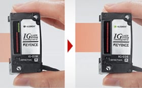 IG Series multi-purpose CCD laser micrometers provide high-precision differentiation that is unaffected by how much light the target transmits. This series uses a line-charge coupled device (L-CCD) as its light-receiving element. Instead of using received light intensity, it captures the edge of transmitted laser light, so it can perform high-accuracy, stable differentiation with 5 μm repeatability and ±0.1% linearity. This makes the IG Series capable of supporting various applications, including edge detection and positioning of clear glass, precise recognition of workpiece OD, feedback control while detecting a sheet edge, and roll gap measurement. The positioning monitor on the main unit facilitates optical-axis alignment when starting up a line and during changeovers.