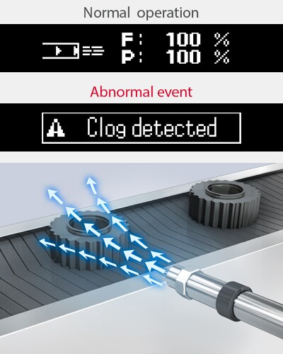 The compact case of the FD-EP Series houses a flow sensor and a pressure sensor, making it easy to diagnose the status of pneumatic equipment. The specialised application function makes real-time diagnosis and predictive maintenance of cylinders, suction transfer, seating and air blowers easy. The free flowing structure prevents pressure loss, clogging and supports both small and large flows. When selecting the sensor, just choose the one that matches your tube diameter. The high-definition display allows for intuitive operation with no need for an instruction manual. This one device can handle applications in which gases flow forward and backward such as cylinder forward and backward motion and the suctioning and vacuum release during suction transferring.