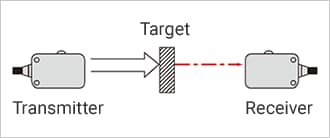 Thrubeam models include a transmitter and receiver installed opposite each other. As the target passes between the transmitter and receiver, light is blocked and detection is performed by determining the decrease in the received light intensity. Detecting distances range from a couple of inches to several feet. Stability is achieved with high resistance to dirt and dust. Opaque targets can be detected regardless of reflectance, colour, or material.