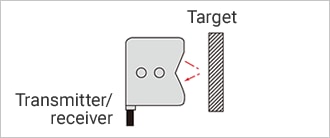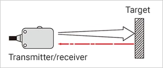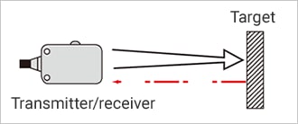 With reflective models, light emitted from a transmitter hits the target and the reflected light is returned to the receiver. Target detection is based on the amount of reflected light returned to the receiver. Because the detecting distances range from a couple of inches to several metres, adjustment during installation is incredibly easy. Detection is possible even for small targets.