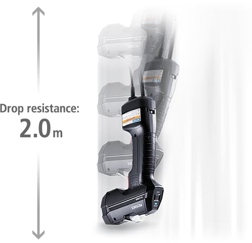 The device’s ultra-rugged body is equipped with a rubber protector capable of withstanding strong impacts, preventing breakage even when the device is dropped from 2.0 m. The long service life and highly durable design ensure the device can be used with confidence even in frequently used sites.