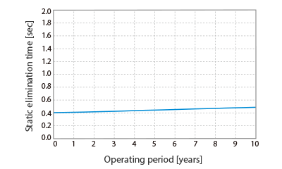 Accurate static elimination is provided even with probe wear. The Hi-Power I.C.C. system monitors the ion generation status at all times. The applied voltage is automatically increased as the probe wears down.