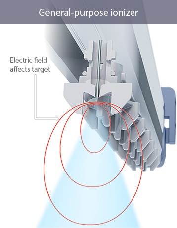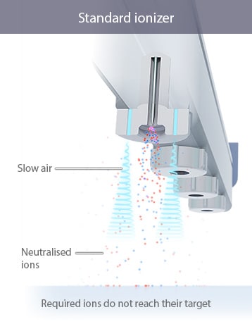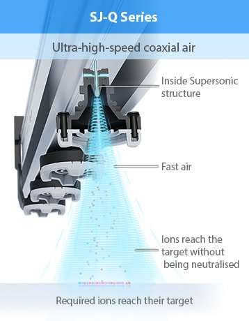 Probes are protected from dust and other debris to provide accurate static elimination for as long as possible. Supersonic air is sprayed coaxially onto the electrode probe, enveloping it and repelling dirt from outside air.