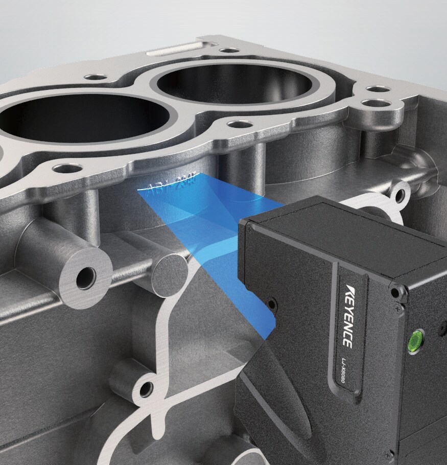 It is difficult to read text from curved and cast surfaces with a vision sensor. Furthermore, this reading becomes unstable if there is dirt on the surface. The 2D/3D Laser Profiler LJ-X8000 performs OCR on 3D images created from height data, providing stable reading even if the surface is curved or dirty.