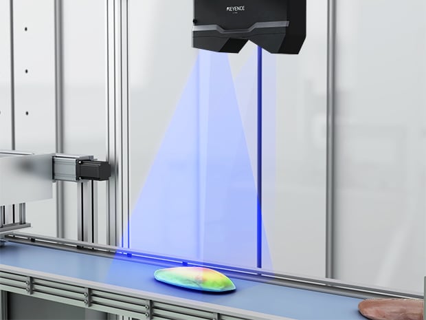 To prevent undercooking caused by variations in dimensions or volume of fresh meat, 3D inspection is increasingly adopted in food factories. By using height data, it is possible to measure not only length and width, but also thickness, helping to ensure uniform cooking.