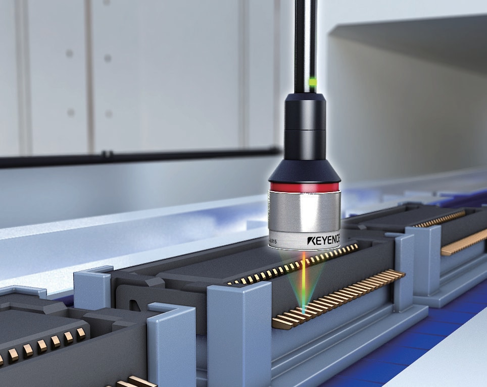 On-board electronic components, which are used in harsh environments for a long time, require stricter quality guarantees than general-purpose electronic components. Using a laser displacement sensor makes full inspections possible.