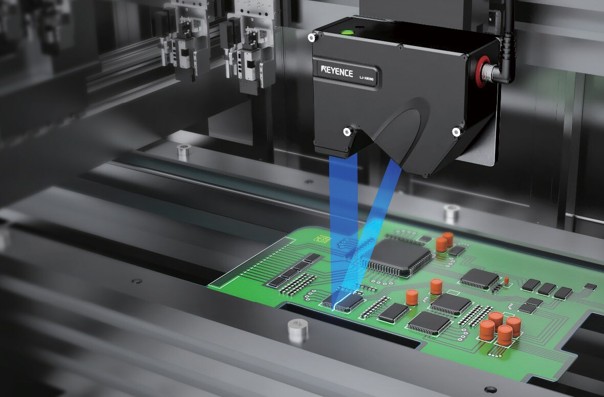 This system can be used to measure the height of integrated chips. Equipped with an alignment adjustment function, it automatically corrects for workpiece tilting and misalignment on a conveyor, enabling more accurate measurement.