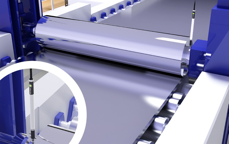 Detecting the height of a roll jig makes it possible to determine the number of packaging materials for medical products. Even if the packaging material colour or material changes, the GT2 Series can be used without needing to change settings.