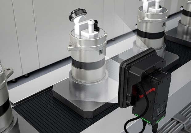 The vision system is used for traceability by reading 2D codes marked on parts. Powerful image enhancement filters allow for stable readings even with variation in brightness and glare.