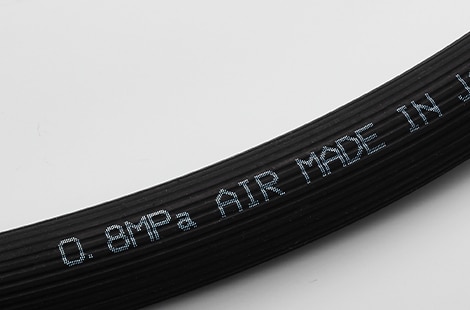 Printing on wire, cable or pipe is done immediately after the product is cooled down after coming out of an extrusion moulding machine.