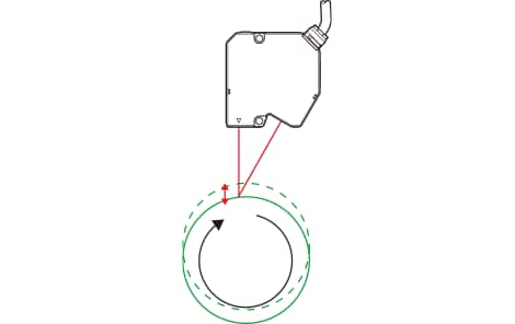 The laser is pointed at the apex of the circle to capture fluctuations in distance through high-speed sampling.