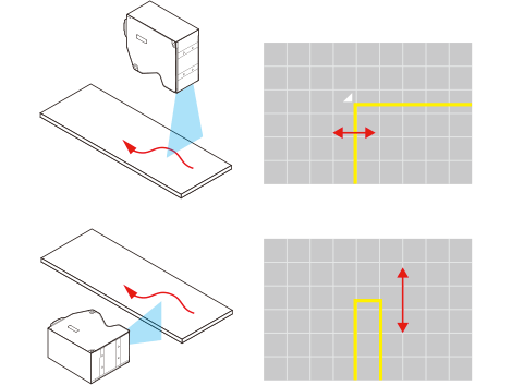 The laser line reflects off the target creating a profile from which to monitor edge position fluctuations. This measurement can be taken from above or the side of the target.