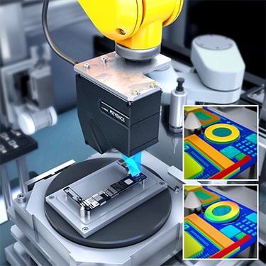 3D inspection allows users to accurately detect whether components are properly seated in the assembly or if elements are tilted. Using a KEYENCE 2D/3D laser profiler with a blue laser ensures stable measurement, even for targets with varying materials.