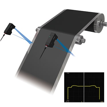 The TM-3000 projects the 2D shape of a web's edge to measure thickness with high accuracy. By capturing the surrounding area, the TM can account for web decentering or roll runout to correctly measure the material thickness regardless of surface condition.