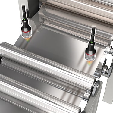 Measure electrode coating thickness inline using opposing non-contact sensors. The CL-3000 can monitor thickness of wet coating, which minimizes the time between application and inspection to reduce waste. Simultaneously measure up to three positions across the web using a single controller to confirm thickness and uniformity.