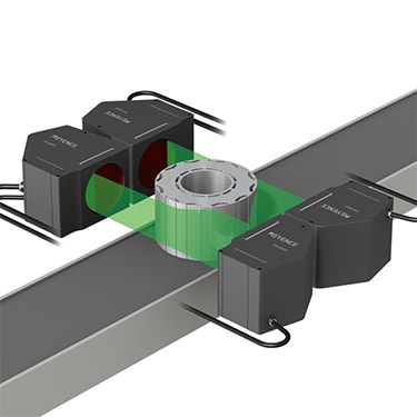 By using two TM-3000 Series sensors, you can check the outer diameter and cylindricity of lamination stacks with larger diameters.