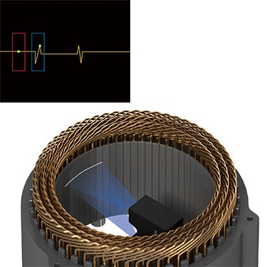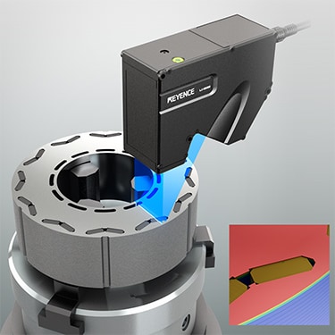 Detect fine chips that can occur when inserting magnets into rotors using 3D inspection. The LJ-X8000 Series provides high resolution 3D images, making it possible to reliably inspect for tiny chips that are difficult to detect from a 2D image.