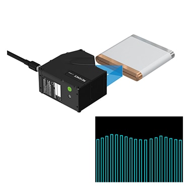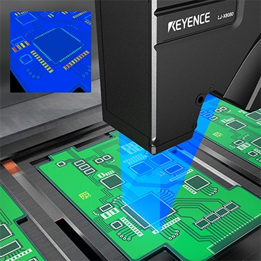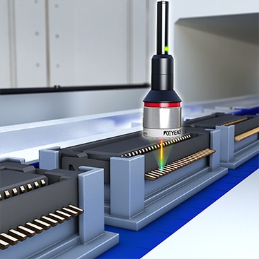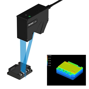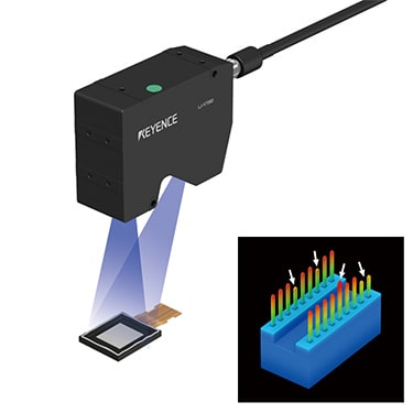 Measure the position and projection of connector terminals simultaneously. Conventionally, two measurement steps were required using an image processing system and a contact sensor. The LJ-X8000 Series can perform both inspections simultaneously. This achieves cost reduction by reducing the amount of installed equipment.