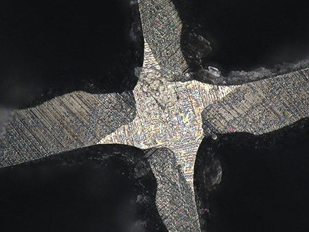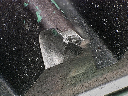 Multi-lighting allows easy observation of the starting point of a fracture surface.