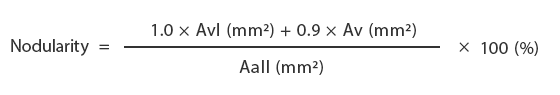 The formula to use in determining nodularity and the values to substitute are explained below. -