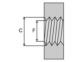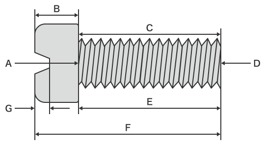 Generally, the length of a male screw is called its nominal length and refers to (E in the figure above) the length under the head (B in the figure above). However, this definition varies depending on the screw type and the shape of the head. For example, the total length (F in the figure) is the nominal length in the case of countersunk screws, whose heads are flush with the material when fully screwed in.