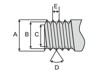 - Thread angle: Angle that opens from the peak of the thread to its surrounding valleys.
