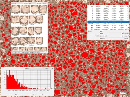 The grains used to be visually counted by size using a scanning electron microscope (SEM). This process can now be done automatically using the automatic area measurement function.