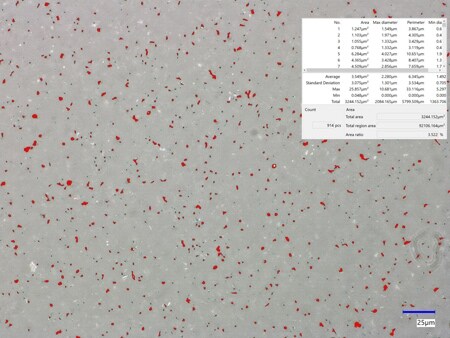 The automatic area measurement function allows for accurate grain size analysis, significantly reducing the amount of analysis work.