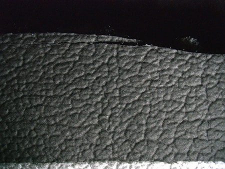 - Surface irregularities are formed by masking areas that should not be processed and applying an etchant (mordant) to areas to be processed. This method is typically used to form leather textures.