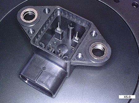 With the exception of multi-coloured moulding, injection-moulded products are generally single-coloured and therefore have low contrast, which does not cater to easy observation of surface defects. It was particularly difficult to identify suitable lighting conditions for the observation of weld lines, which are grooves or patterns caused by poor fusion in the weld, where flows of melted plastic meet in the injection mould.