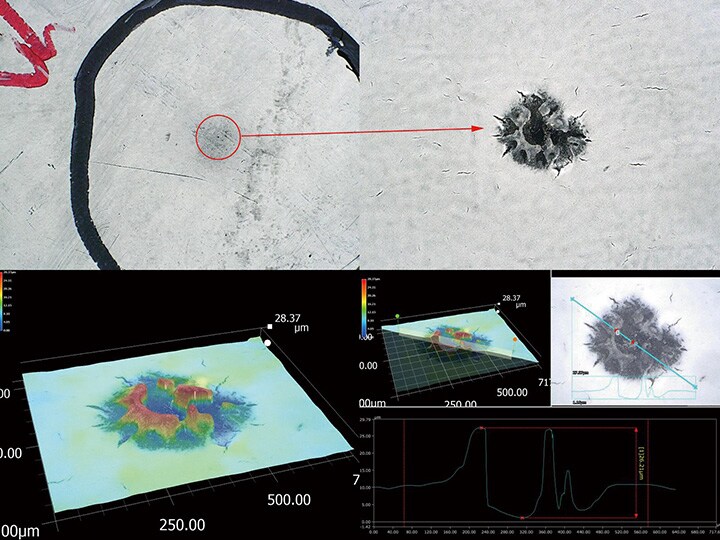 The VHX Series 4K Digital Microscope can use high-resolution, high-magnification images for clear observation of pinholes, which was not possible with conventional microscopes.