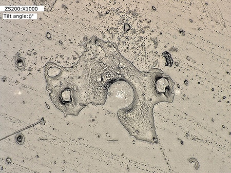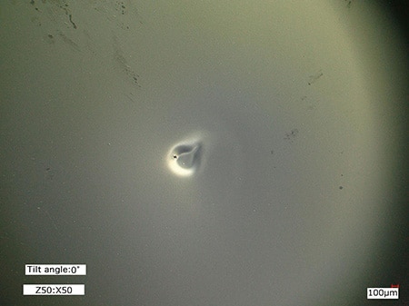 The ring-reflection removal function of the VHX Series 4K Digital Microscope supports accurate observations of the shape of foreign particles trapped in a film.