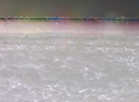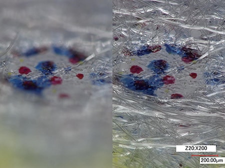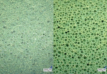 Due to their limitations in the depth of field and resolution, conventional microscopes do not allow for easy observation of the textured, complex shapes of sponge rollers. The VHX Series 4K Digital Microscope features seamless zoom and real-time depth composition functions that automatically switch the magnification up to 6000x. This automatic switching of the magnification enables the observation of the details of the surface texture of the sponge roller with high-resolution, fully focused images even at high magnifications.