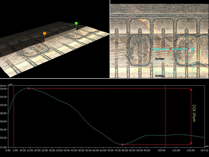 The VHX Series 4K Digital Microscope achieves high-accuracy 3D shape measurement using high-resolution magnified images. In addition to displaying the profile height of the surface in colour, the new microscope can acquire measured values from 3D and profile measurements.