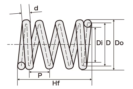 Symbol: Di (mm/inch)Free height The height of the spring with no load.