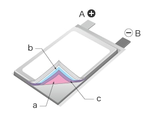 Lithium-ion batteries, which are secondary batteries called LiBs for short, are commonly used for smaller and thinner electronic devices including smartphones, tablets, wearable devices, and laptop computers; in-vehicle batteries for electric vehicles (EVs) and hybrid electric vehicles (HEVs); and power storage systems for residential photovoltaics and fuel cells. With the expanded applications, lithium-ion batteries are now manufactured to have various structures and shapes. Read on for explanations of the basic structure, typical shapes, and some other related items of lithium-ion batteries.