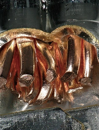 With the glare removal function and ring reflection removal function, the VHX Series 4K Digital Microscope removes reflection from glossy metal surfaces, making it possible to accurately observe and understand the crimping conditions of the core wire.