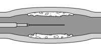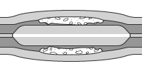 Balloon type catheters may damage the area with arteriosclerosis or the blood vessel may be blocked again. Therefore, after using a balloon type catheter, a stent type is often used as a follow up. When a stent type is used, a guide wire runs through the area with arteriosclerosis and a stent (a metal mesh tube) is placed to cover the balloon. After the balloon expands the blood vessel, it is removed, then the stent expands to support the widened blood vessel to ensure the blood vessel width.