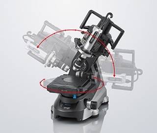 The VHX Series 4K digital microscope uses a free-angle observation system with XYZ motorised stage to enable tilted observation with easy field-of-view alignment, rotation, and oblique axis motion. The target stays centred in the field of view even if the lens is tilted or rotated. The result is tilted observation that is both easy and smooth.