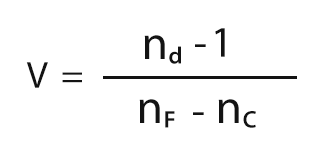 The dispersion of an optical glass is expressed with a value called the Abbe number (v).