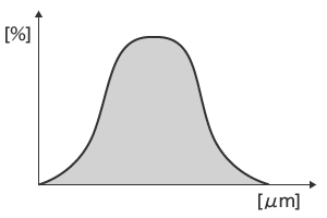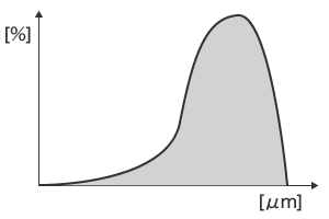 Particle size distributions are usually expressed graphically with the particle diameter [μm] on the horizontal axis and the frequency [%] on the vertical axis.